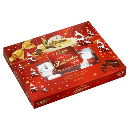 Zselé (cukor, glükózszirup, víz, zselésítő anyag: pektin, savanyúságot szabályozó anyagok: citromsav, nátrium karbonátok; aromák), Étcsokoládé min. 20% (kakaómassza, cukor, kakaóvaj, emulgeálószer: lecitinek (szója), aroma), Kakaó szárazanyag az étcsokoládéban legalább 70%